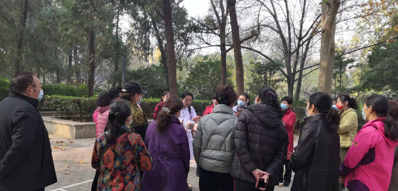为了更好的普及家庭健康教育,让更多的人群掌握家庭急救与护理,2021年11月19日上午,beat365中国唯一官方网站beat365中国唯一官方网站基护教研室杨丽萍主任、刘丽老师、石豫洁老师来到郑州市碧沙岗公园,五一公园及人民公园,向广大人民群众进行家庭急救与护理知识的普及。