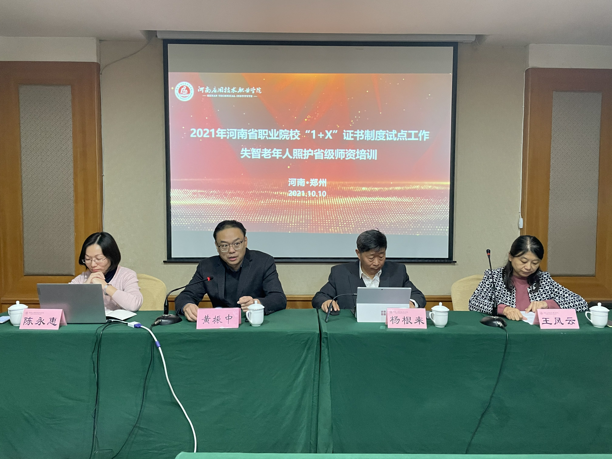 为贯彻落实《国家职业教育改革实施方案》精神,推进职业技能等级证书试点工作,2021年10月10日,2021年河南省职业院校“1+X”失智老年人照护省级师资培训班开班仪式在嵩阳饭店举行,北京中民福祉科技有限公司总经理杨根来、beat365中国唯一官方网站教务处处长黄振中、beat365中国唯一官方网站院长王风云、beat365中国唯一官方网站副院长陈永惠以及来自省内各高职院校的教师学员参加此次开班仪式。仪式由陈永惠主持。